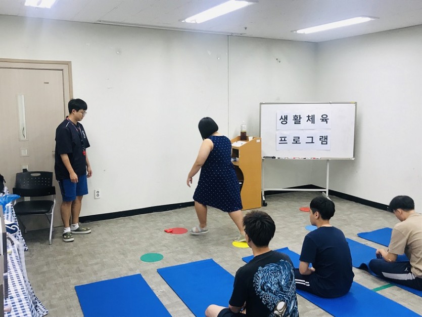 장애인 생활체육 프로그램 (14회기) 페이지 정보 작성자 관리자 댓글 0건 조회 2,262회 작성일 19-07-24 00:21 목록 본문 페이스북 공유 트위터 공유 구글+ 공유 장애인 생활체육 프로그램 14회기 진행하였습니다. 간단한 체조, 스트레칭과 마커판, 콩주머니를 활용하여 제자리 멀리뛰기, 콩주머니 던지기등 진행하였습니다~^^ 이전글무지개동아리 활동 19.08.12 다음글장애인 생활체육 프로그램 (13회기) 19.07.17