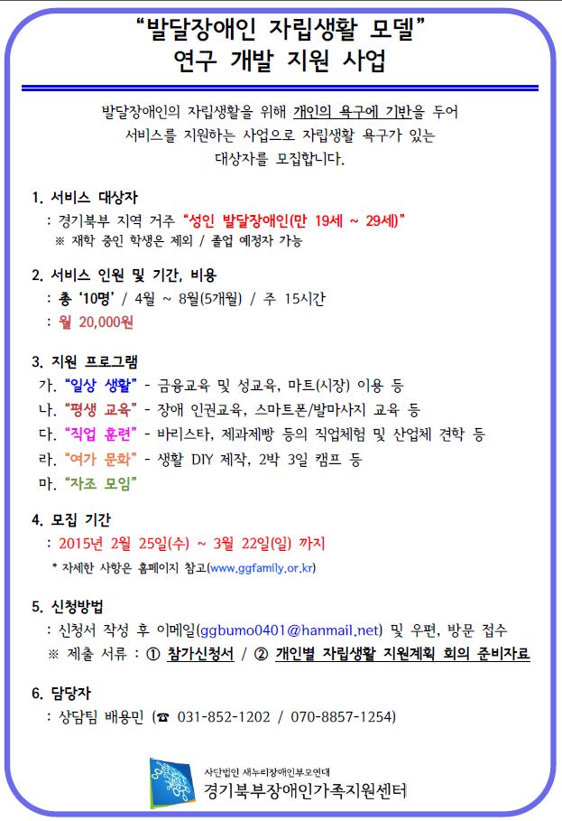 경기북부장애인가족지원센터 "발달장애인 자립생활 모델" 사업안내