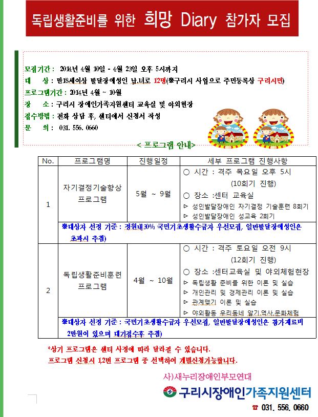 독립생활준비를 위한 희망 Diary 참가자 모집 > 센터알림
