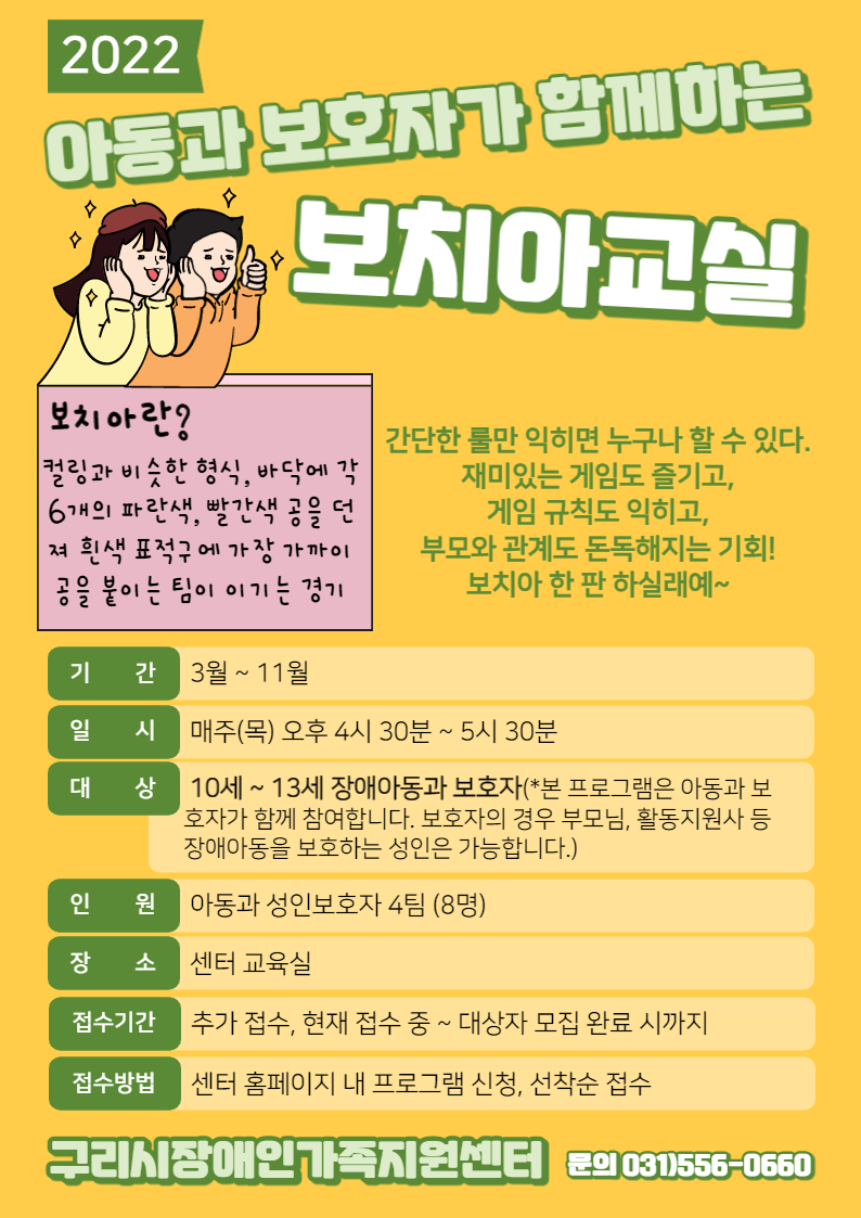 2022 아동과 보호자가 함께하는 보치아교실 접수(2차 추가 모집)
