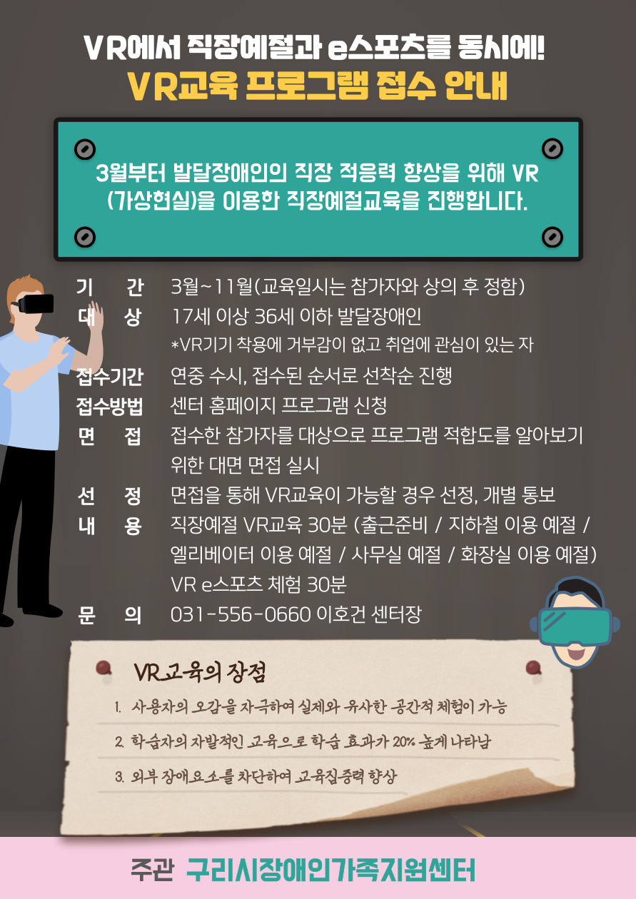 발달장애인(고등학생~성인)을 위한 직장예절 VR교육 및 e스포츠체험 프로그램 접수